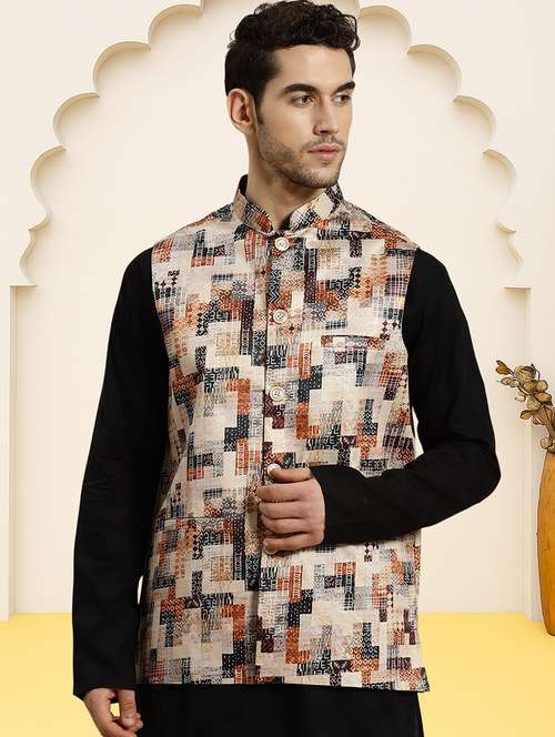 - » men geometric printed sleeveless regular fit nehru jacket