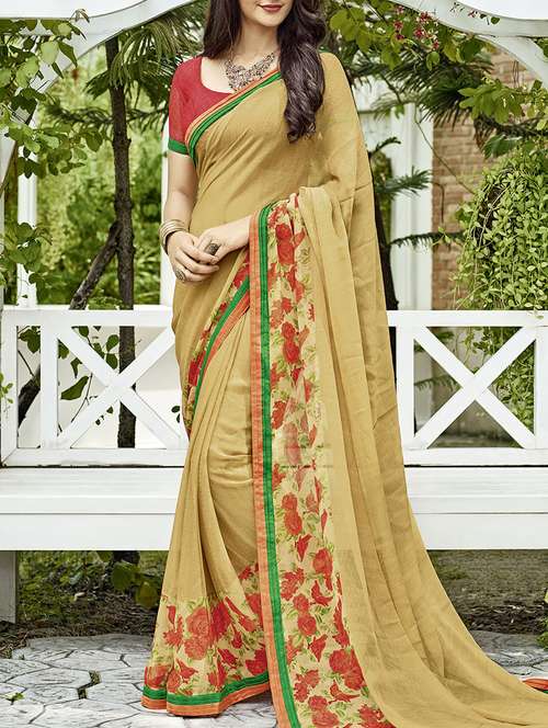 - » beige georgette printed saree with blouse