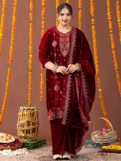 - » women plus size long sleeve kurta palazzo with dupatta set