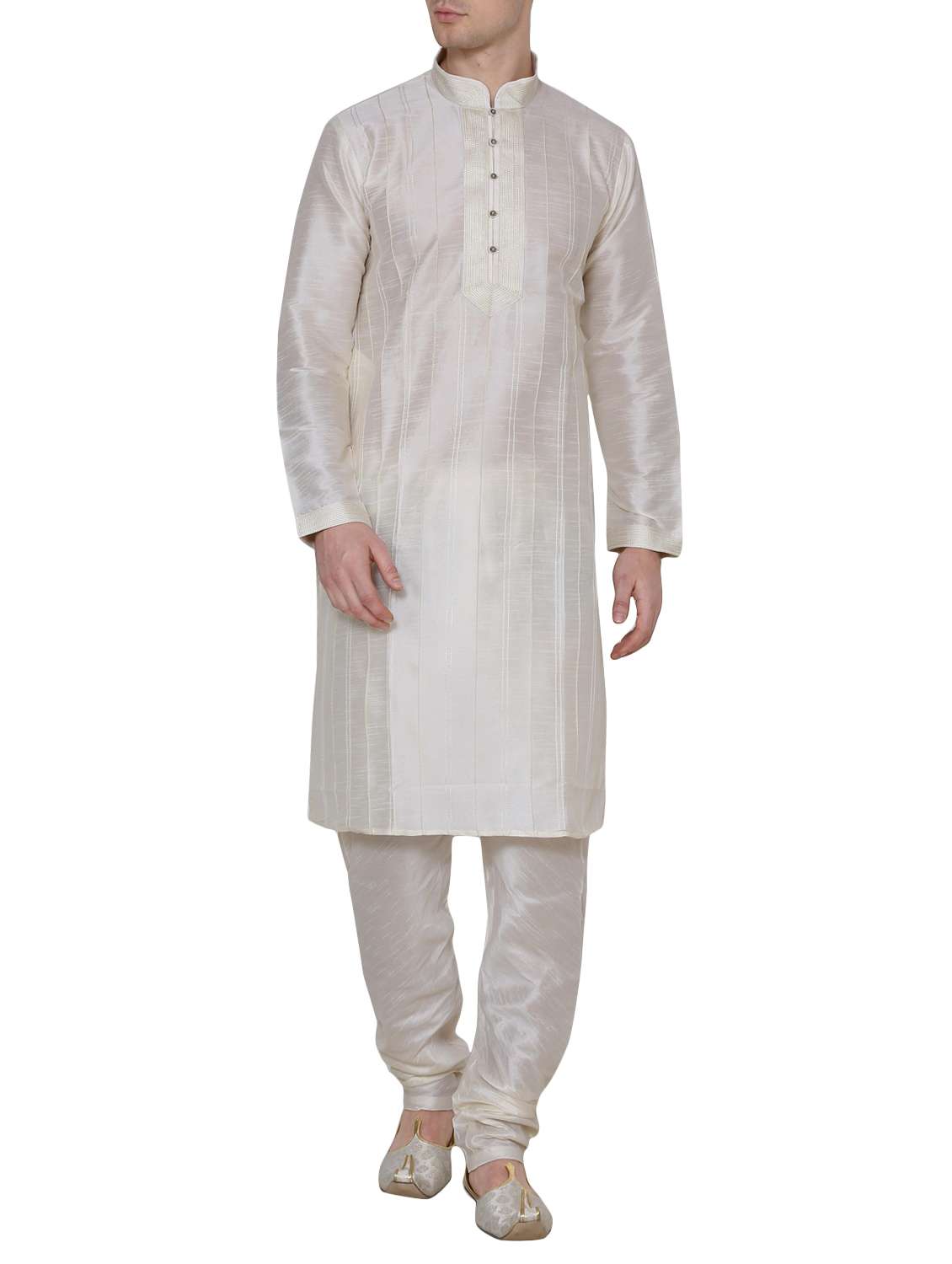 - » solid cream silk blend kurta pyjama set
