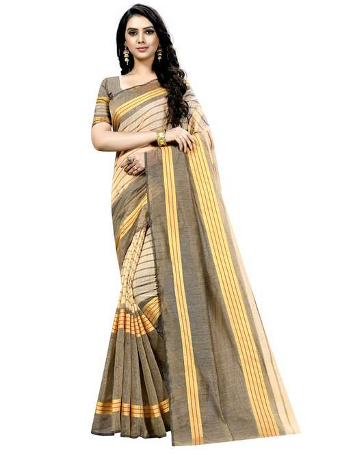 beige striped saree with blouse - 21396823 - Very Small Image - 1