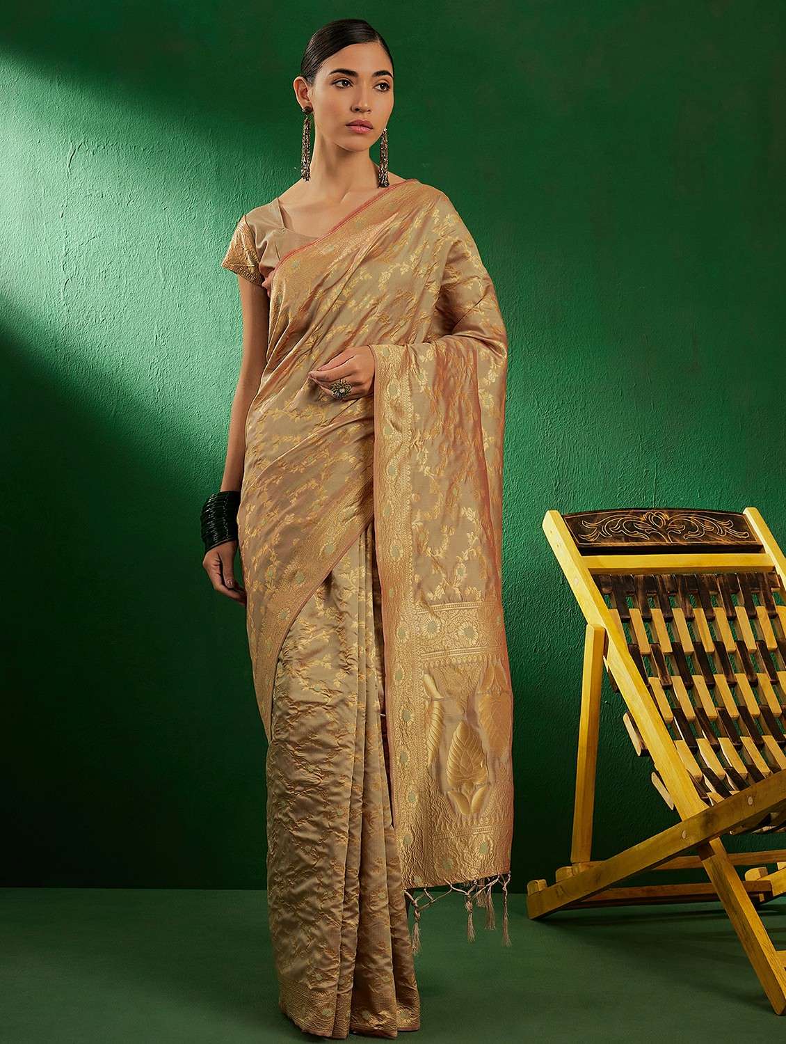 Women'S Beige Color Banarasi Silk Flower Jall Patern Weaving And Jalar Work Saree Having Unstitched Blouse Of Beige Color Of Banarasi Silk Fabric With Designer Multi Flower Jall Patern Weaving And Jalar Work Saree Size:-5.50 M Blouse Size:-0.80 M Images Are For The Referance Purpose Only, Color Of The Actual Product May Little Vary From The Image Due To Screen Resolution