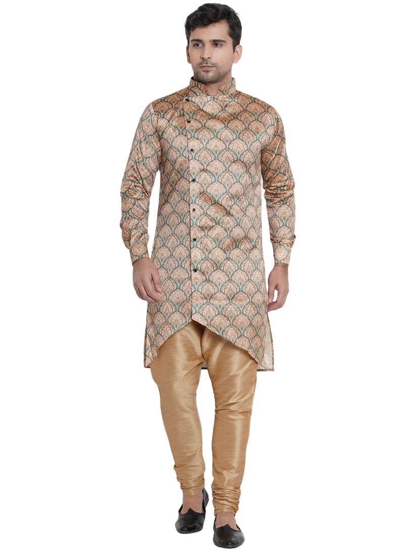 - » beige printed silk blend asymmetric kurta
