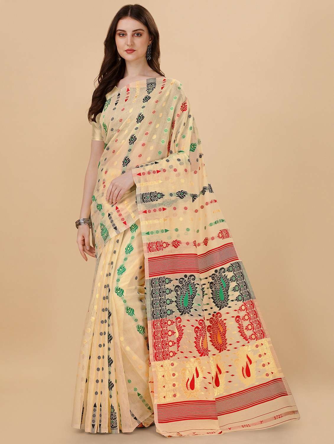 - » beige jamdani saree with blouse