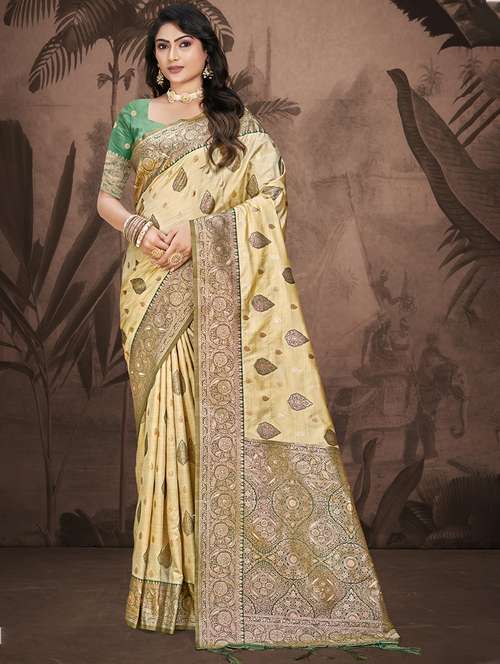 Sangam Prints Beige SILK Woven Work Traditional Saree