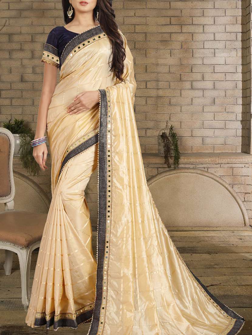 - » mirror lace border checkered beige saree with blouse