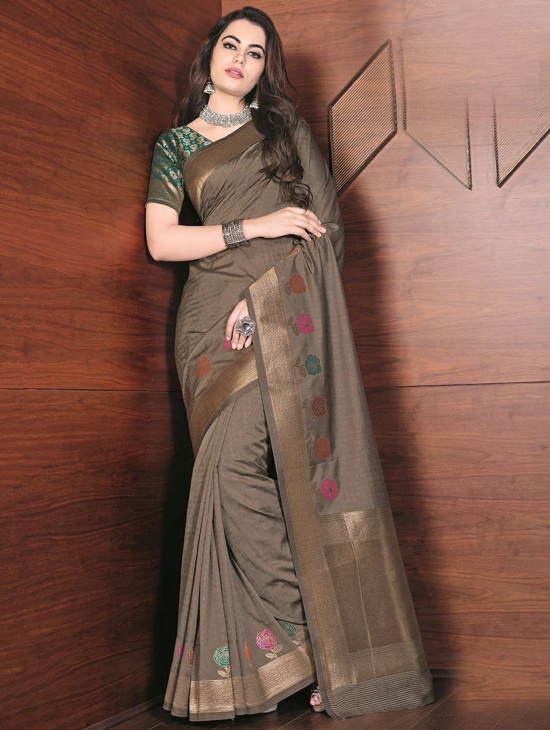 - » women's floral grey colored saree