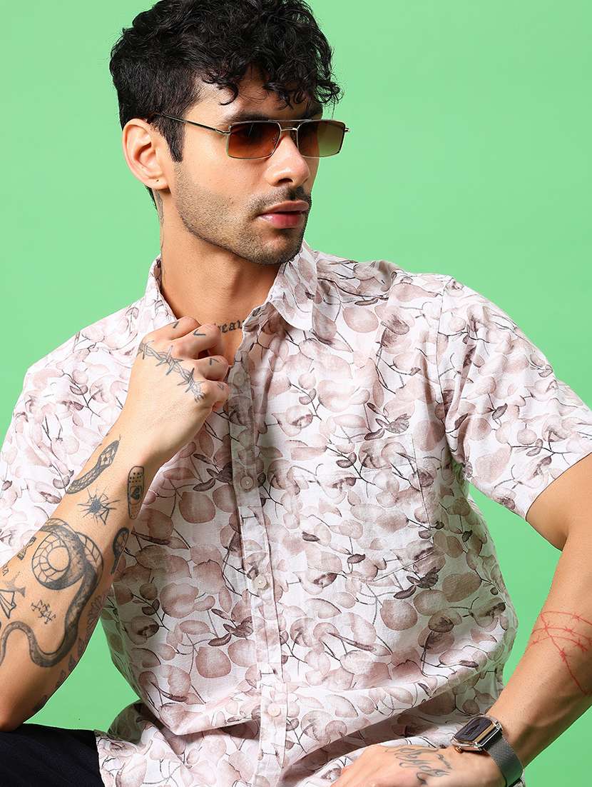 men printed short sleeve regular fit casual shirt