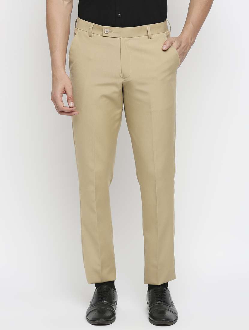 - » beige solid flat front trousers formal trouser