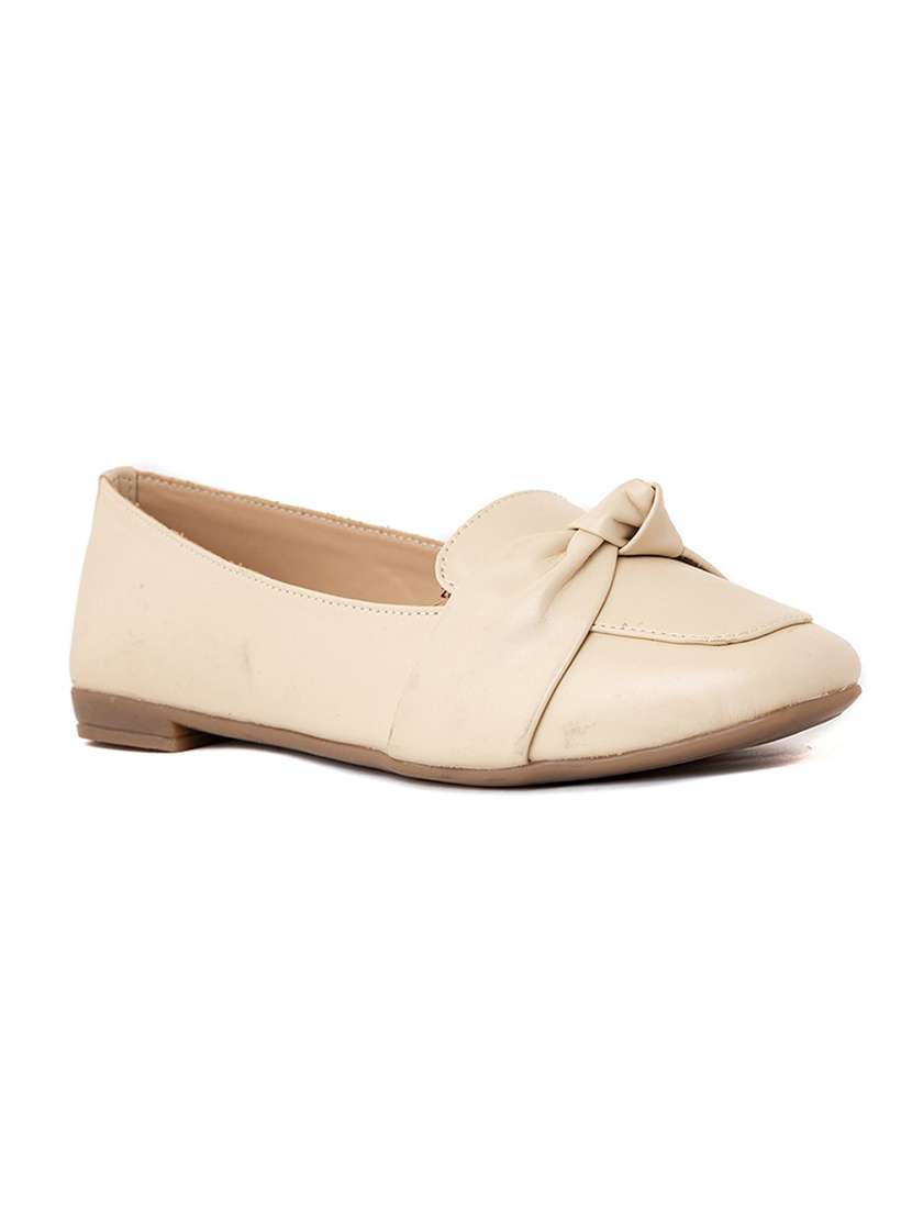 beige synthetic slip on loafers