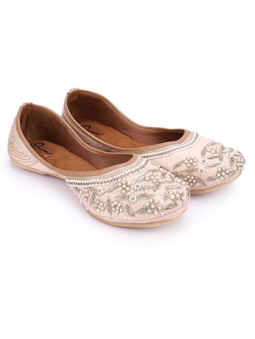 A pair of Beige embellished mojaris Upper Material: synthetic Cushioned footbed Textured and patterned outsole
