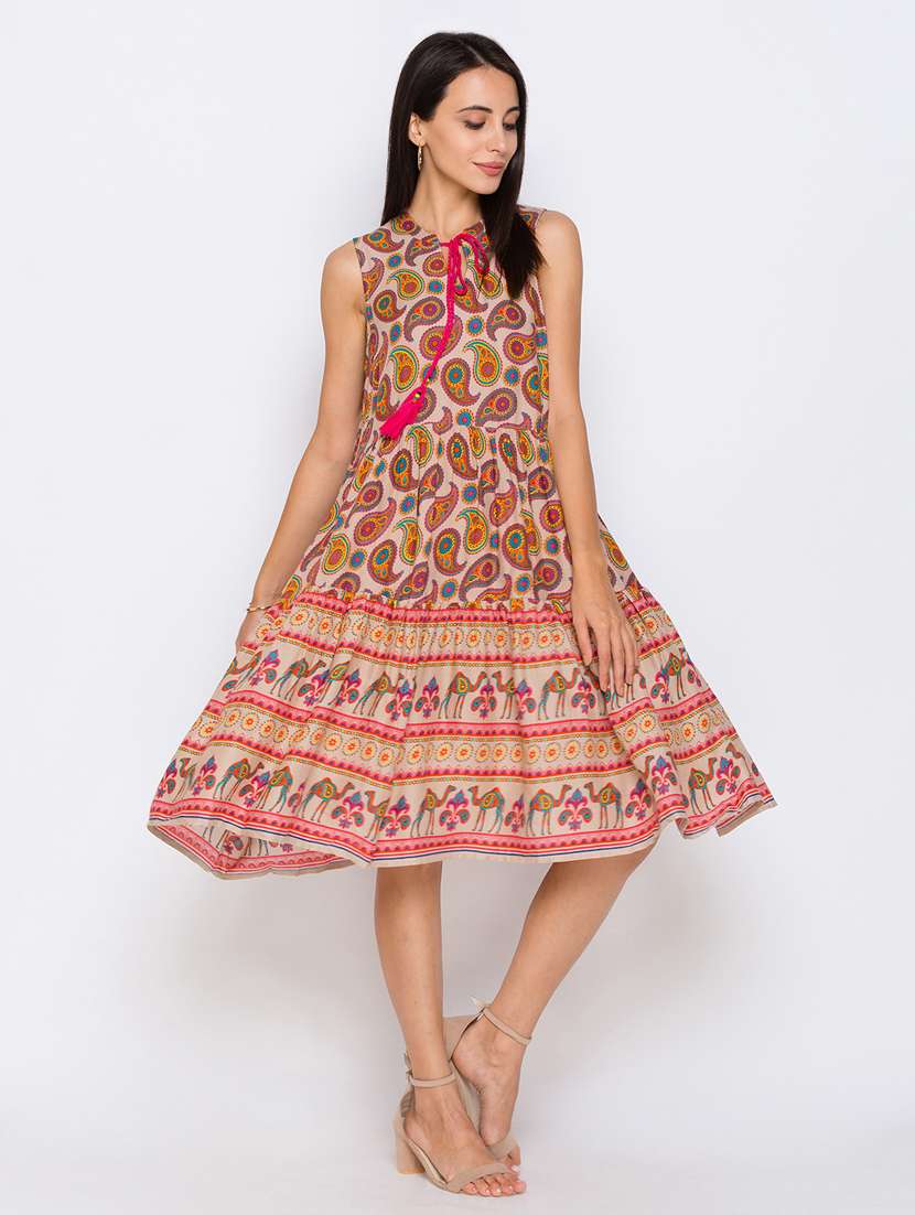 tie up neck paisley dress