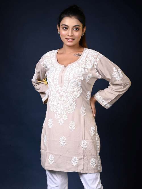 - Find gorgeous sets of ethnic wears in trending designs in beige colors suitable for casual wear of occasions.