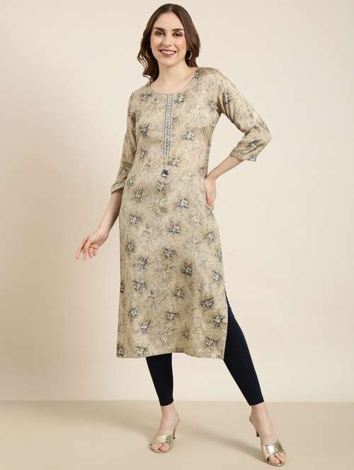 - Grab this beautiful kurta made up of viscose fabric featuring round neck designs.