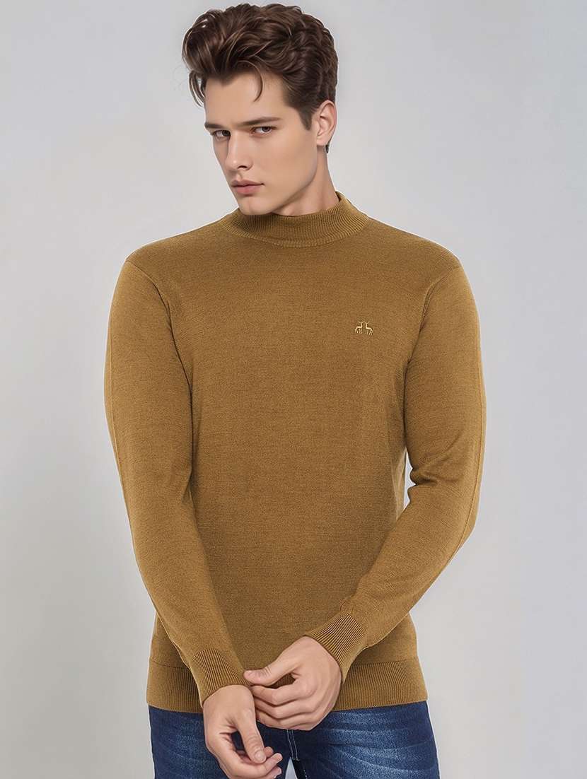 men solid long sleeve slim fit pullover