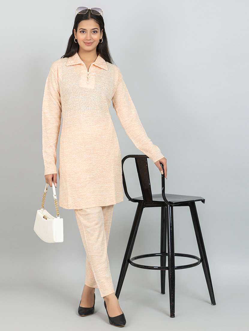 - » women self design long sleeve kurta pant set