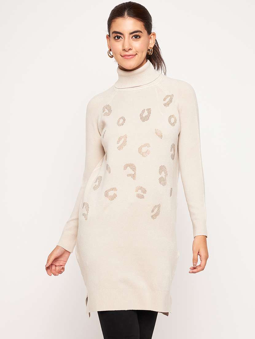 - » beige embellished high neck shift dress