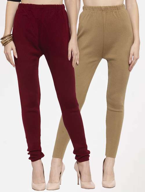 women set of 2 multi coloured woollen leggings - 20610135 - Very Small Image - 1