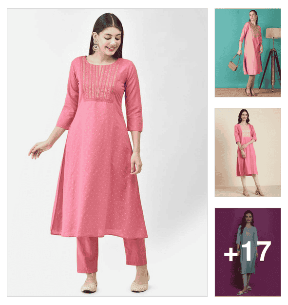 Powder Pink Embroidered Kurtas