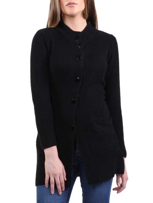 black self design long sleeves cardigans - 14491342 - Very Small Image - 1