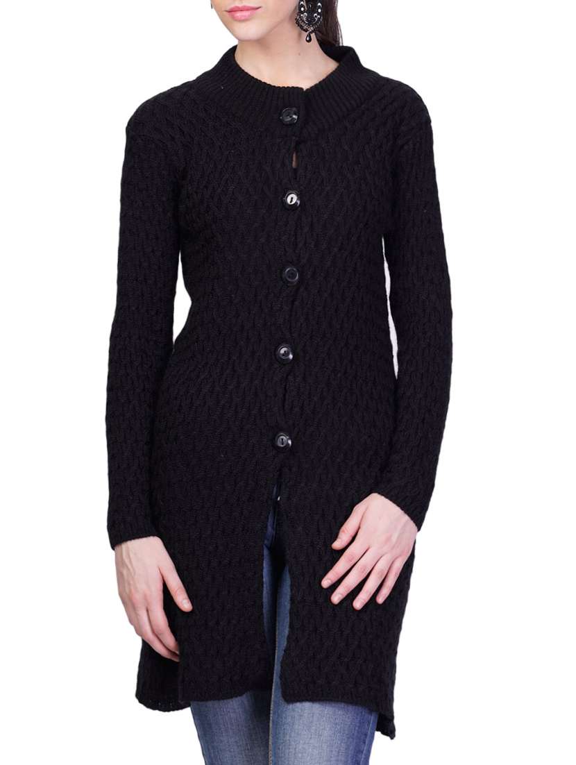 - » black self design long sleeves cardigans