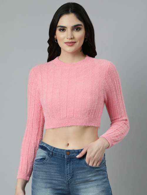- Opt for this top made up of acrylic material and get it in a varied neck design.