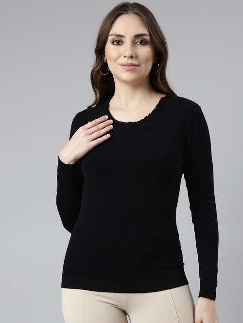 - Opt for this top made up of acrylic material and get it in a varied neck design.
