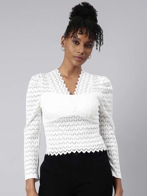 - Opt for this top made up of acrylic material and get it in a varied neck design.