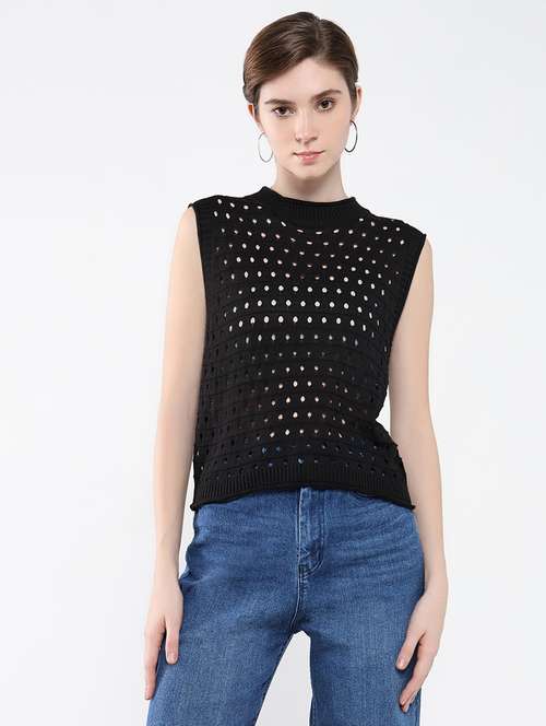 SHOWOFF Women's Solid Black Top