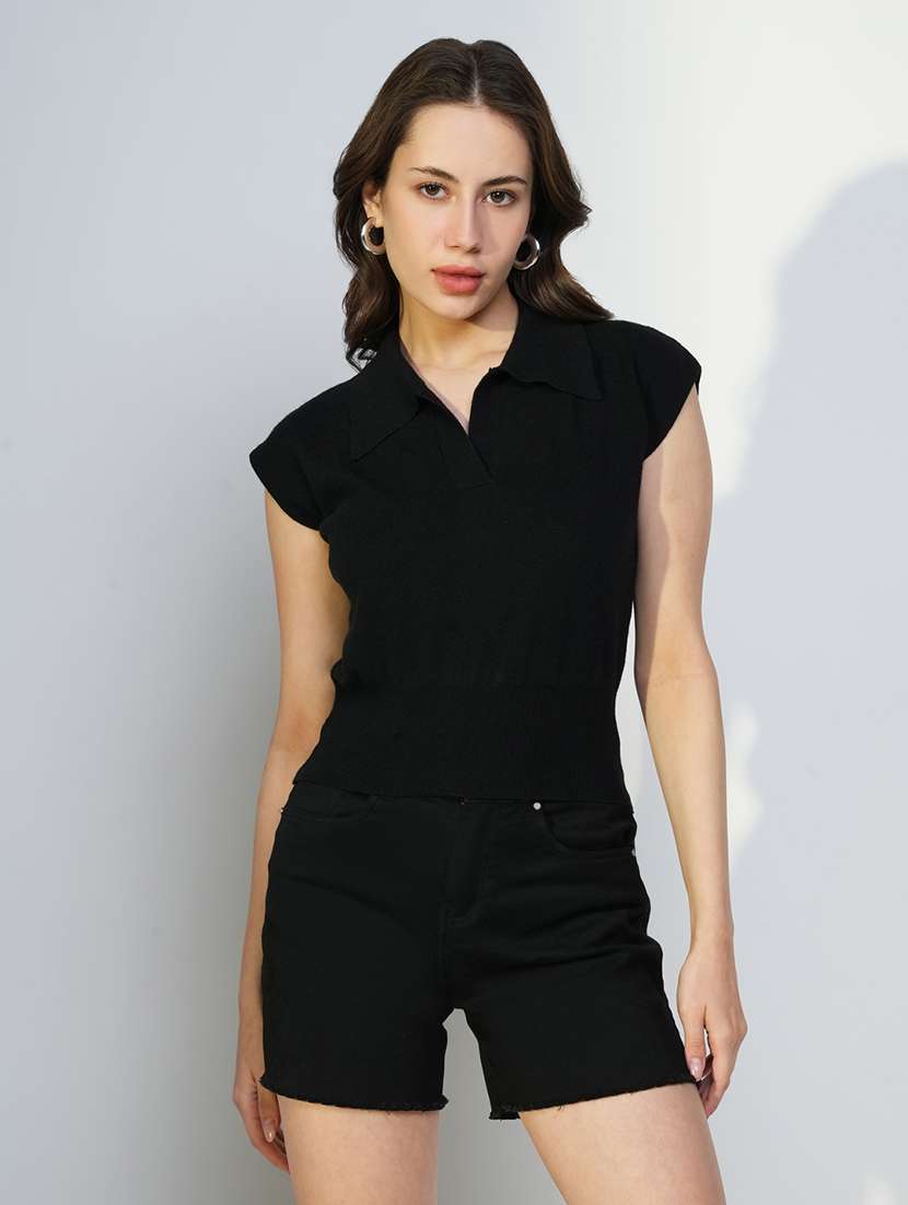 - » women black solid short sleeves top