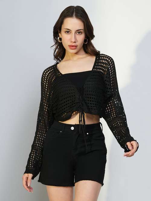 - » women crochet detailed long sleeves top with slip