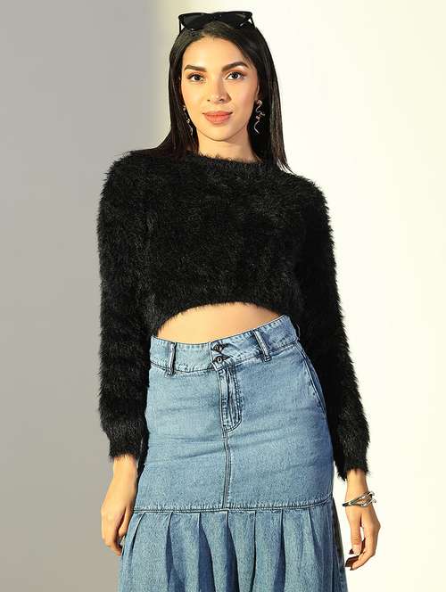 - » women black solid long sleeve crop top