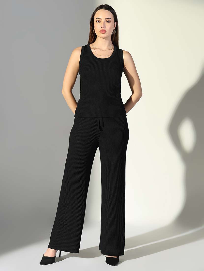 SHOWOFFFF Edition Women's Ribbed Black Tank Top with Pants Co-Ords Set