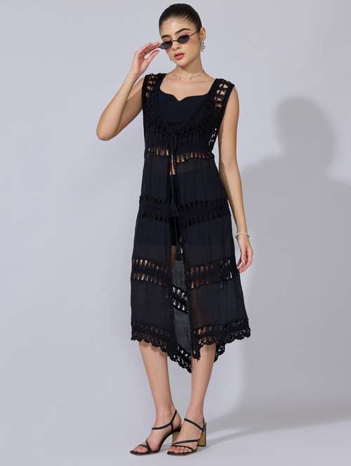 - » women self designed sleeveless crochet shrug