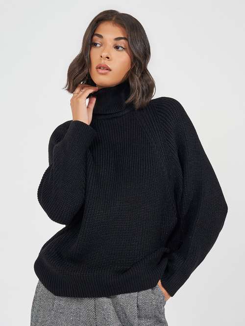 - » women black self design long sleeve pullover