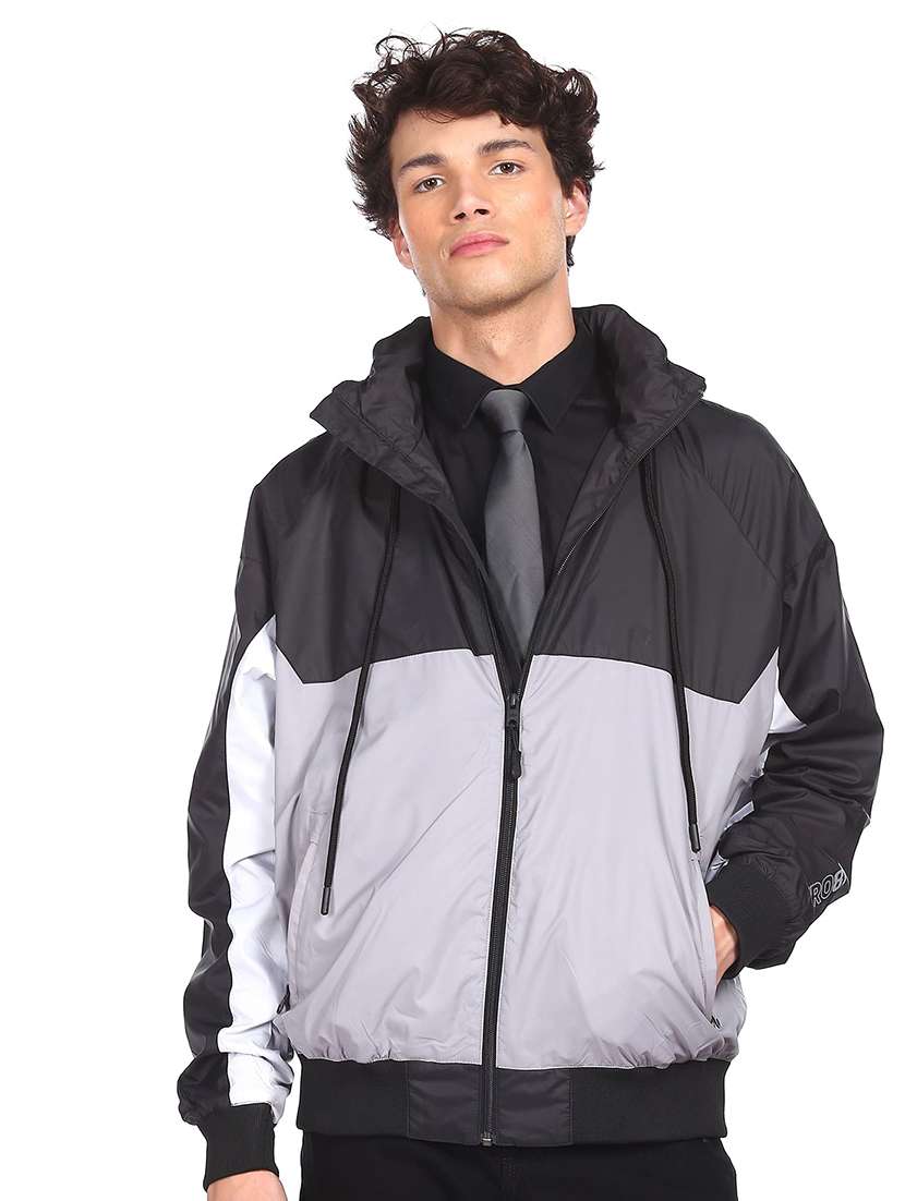 black color block casual jacket - 18177999 - Very Small Image - 1