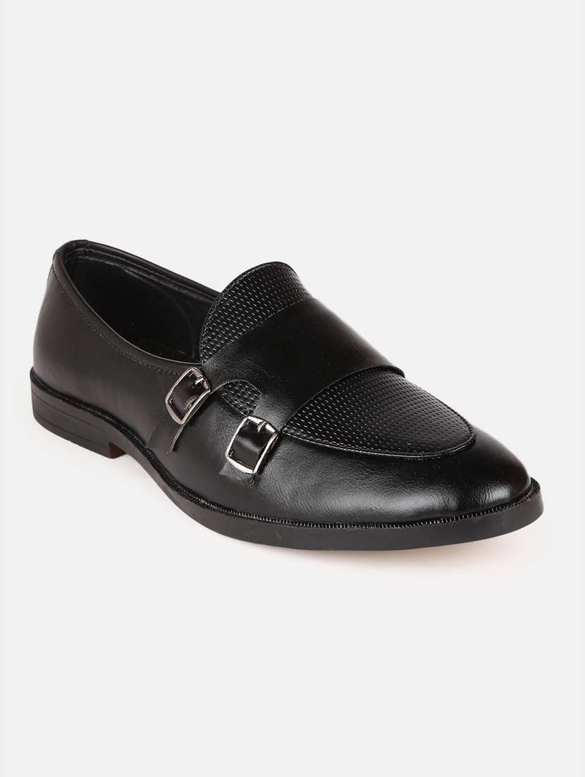 - » black textured slip on monk straps