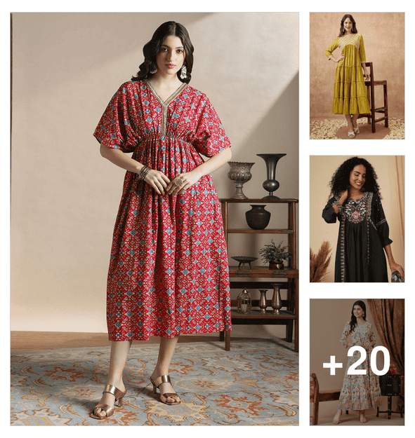women printed three quarter sleeve straight kurta