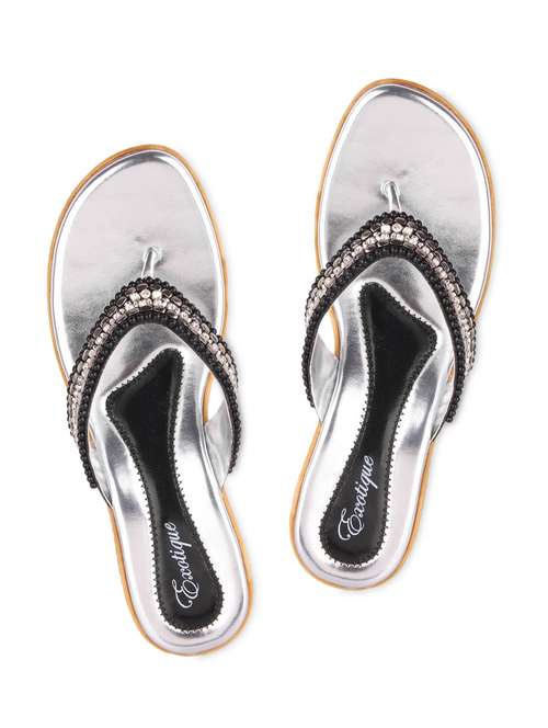 - » black and silver embellished leatherette sandals.