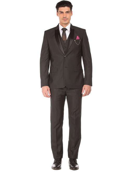brown solid 3 piece suit - 18004204 - Very Small Image - 1