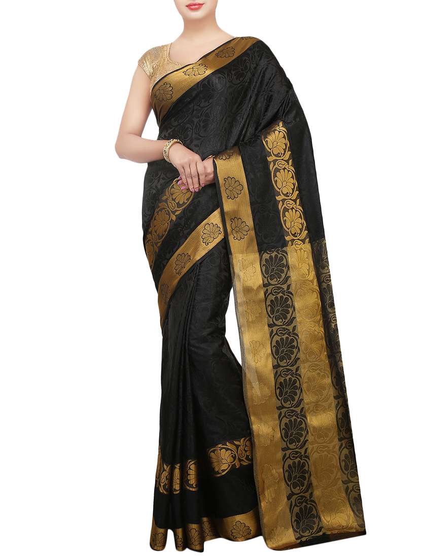 black silk kanjivaram saree with blouse - 14779440 - Very Small Image - 1