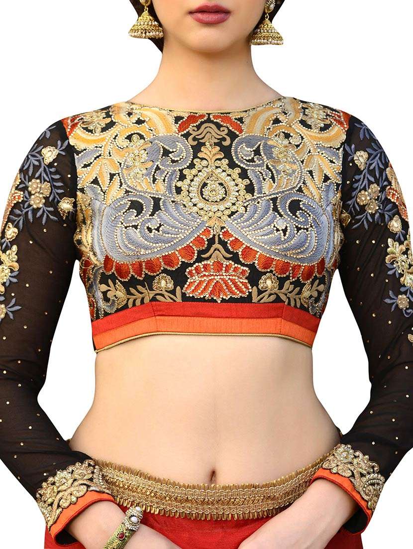 - » black art silk embroidered stitched blouse