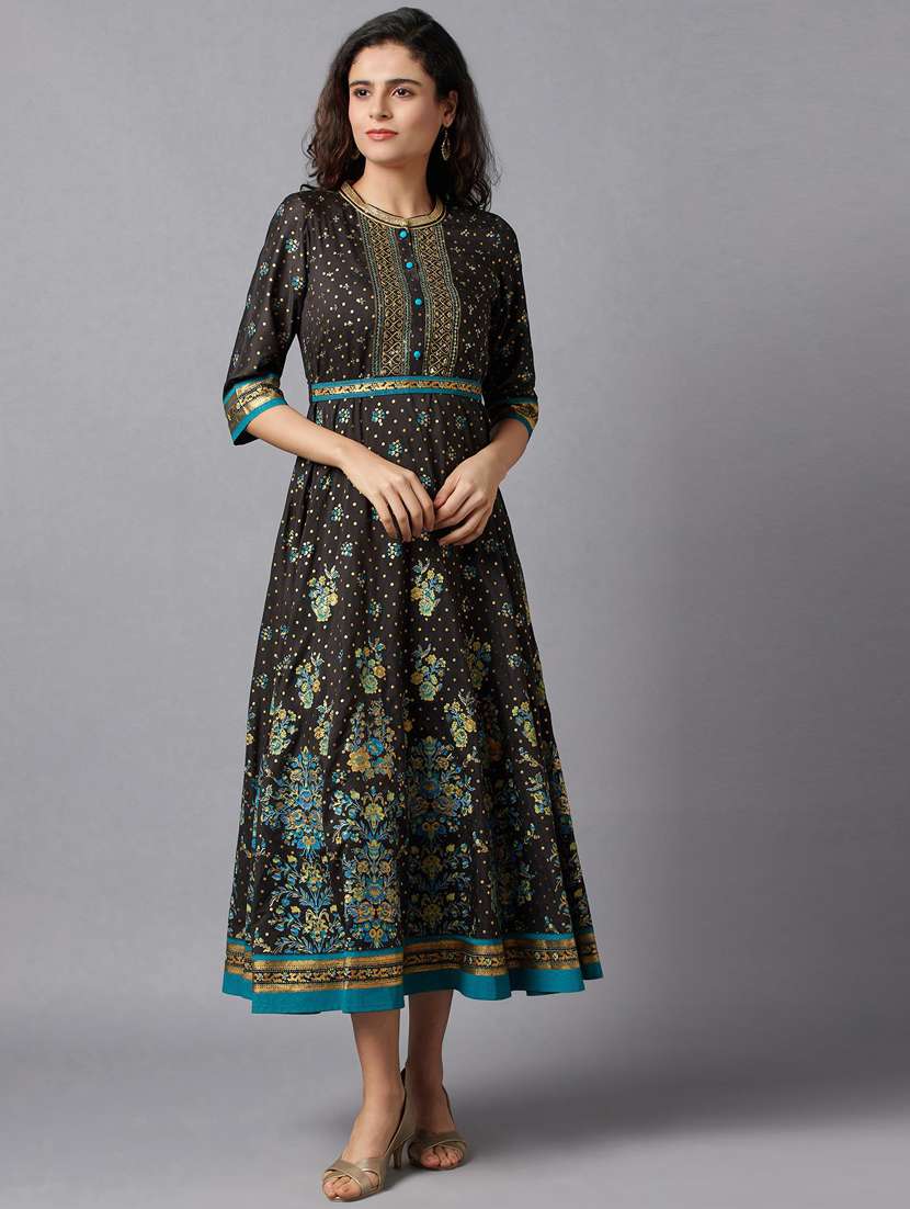 - » black printed fit & flare ethnic dress