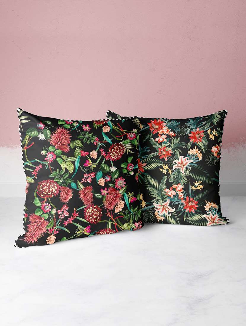 bianca silk-linen luxury cushion cover with contrast front & back (digital print - hidden zipper) -2pc 16 x16 set