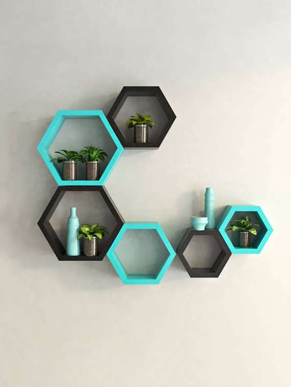 home deco hexagon shape storage wall shelves set of 6