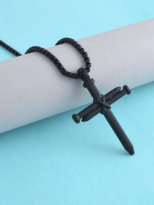 men black cross brass pendant