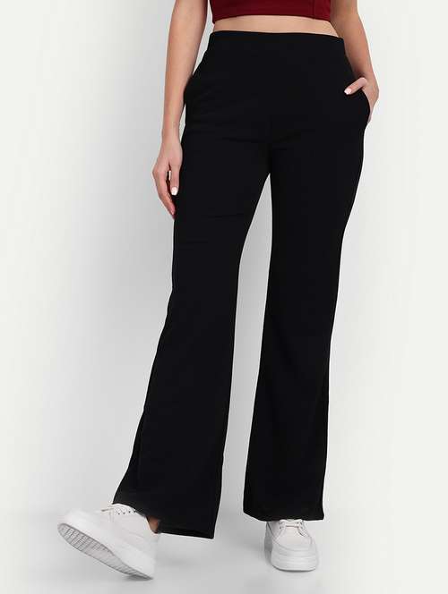 women solid high rise bootcut trouser