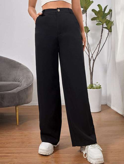 - » black solid wide leg trouser