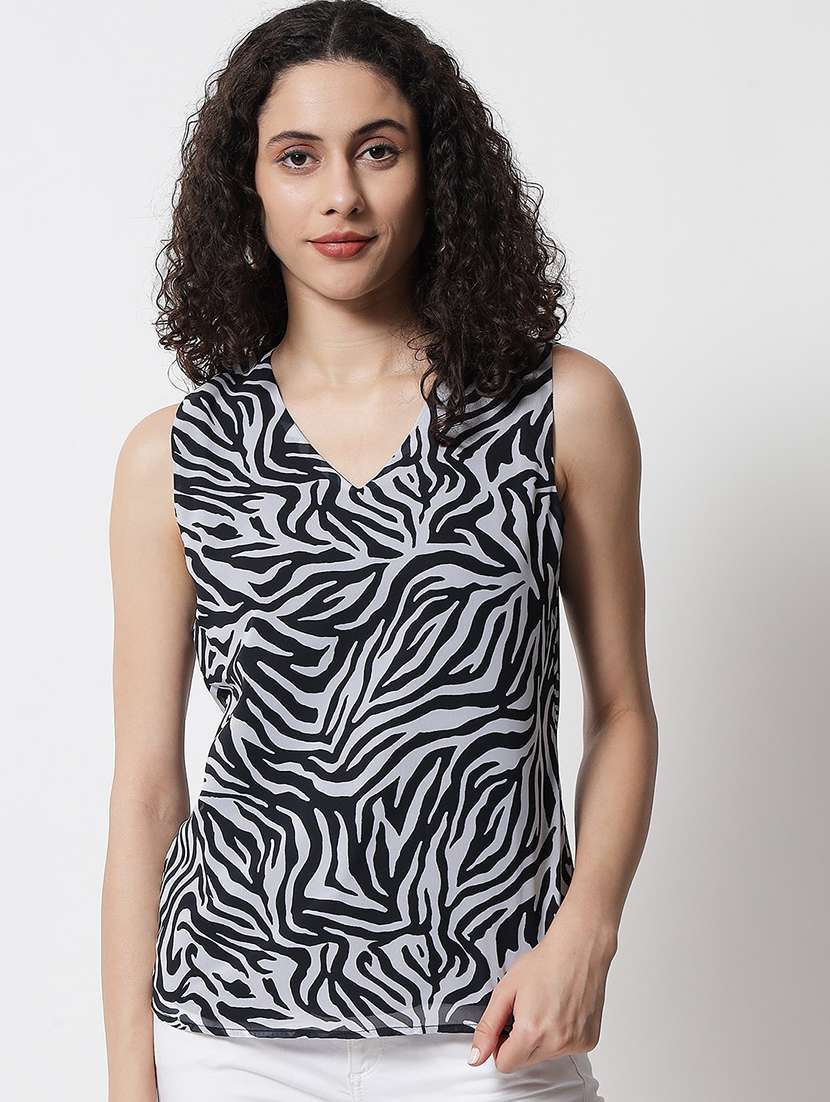 - » women printed sleeveless v neck top