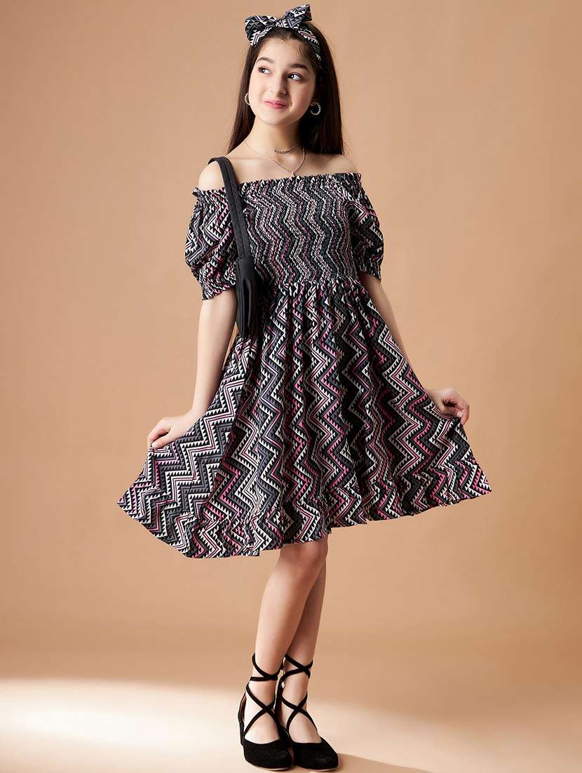 girls printed off shoulder tiered dress